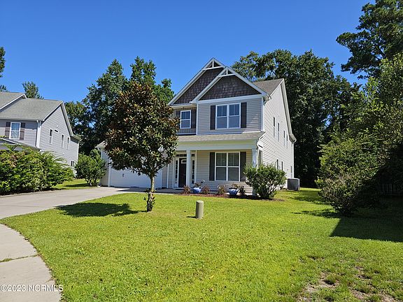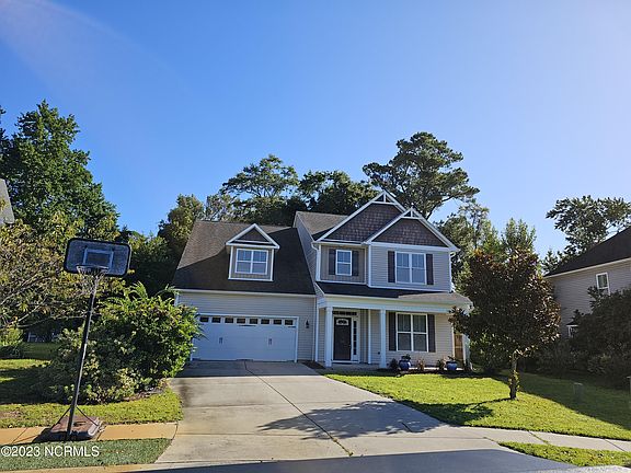 Nice two story house with two car garage in the Porters Neck area of Wilmington. Sidewalk lined community. One bed/bath downstairs. Carpet throughout except vinyl in bathrooms/kitchen and sunroom/flex room. Spacious living room with gas fireplace and closet. Oversized kitchen, with open floorplan. Kitchen comes with an island and stainless appliances. Double pantry, between Dining room and Kitchen. Spacious flex/sun room. Door to outside patio. Upstairs has additional flex room with closet but no door and access to Jack and Jill bathroom. Walk in laundry room. Very large Primary bedroom shows a tray ceiling. Primary bath includes double closets, double vanity, soaking tub, walk in shower and wired for flat screen TV. Spacious guest bedrooms. Two guest bath rooms upstairs.