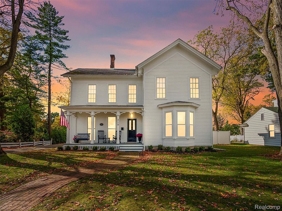 This Historic 1871 estate on OVER a half acre has been updated tastefully throughout, while maintaining all of the original charm and character that must be seen to appreciate!! Updates of the home include CENTRAL AIR (space pak cooling), new siding, exterior and interior paint, new carpet, half bath remodel, newer/high-end appliances (Sub-Zero fridge/Wolf stove), updated lighting and fixtures. The in-law suite has a remodeled kitchen, all new appliances, and a new sliding glass door leading to the back porch with sunset views. Main house (3150 square ft) includes 4/5 bedrooms and 2.5 baths, and over 3100 sq. ft. In-law suite boasts over 1200 sq. ft. and 2br/1ba with newer furnace and central air as well. All in all, 6 bedrooms, 3.5 baths, and 4400 sq. ft. of total living space! Large backyard area with new privacy fence immediately behind home, PLUS huge backyard beyond with firepit. This beauty is located in right in the quaint village of Romeo and is within walking distance to all of the local shops, restaurants, and schools!!