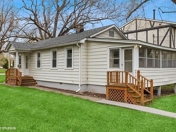 Cozy 2 bedroom cottage on corner lot! New roof! Windows are about 10 years old. Laminate floors in living room and dining room (hardwood underneath!). Hardwood floors in bedrooms. 3 season porch. Just a couple of blocks to the lake and West Beach. Shed attached to garage. Home being conveyed AS-IS.