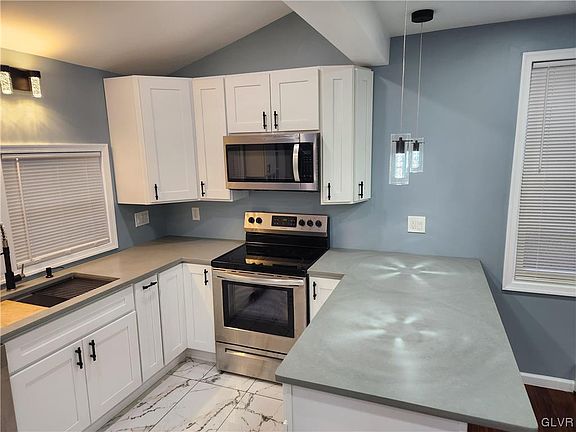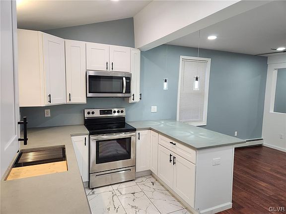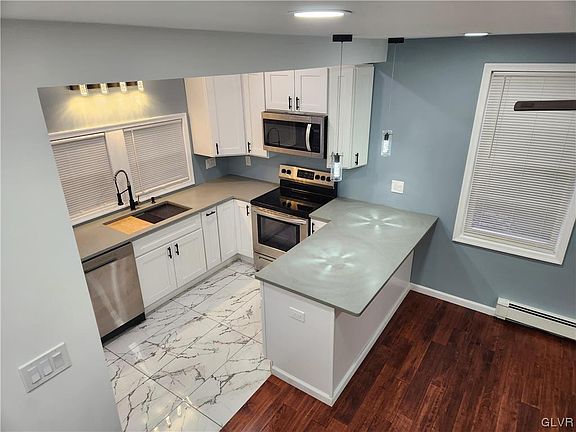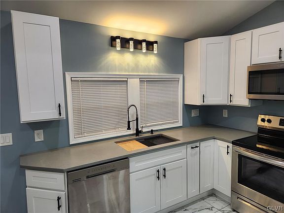 This beautifully redone home features three bedrooms, providing ample living space for residents. The interior boasts a formal living and dining room, creating an elegant atmosphere for entertaining guests. The well-appointed eat-in kitchen includes a convenient breakfast counter and is equipped with stainless steel appliances. The focal point of the living space is a stunning glass chip fireplace, adding both warmth and style. Hardwood and tile floors grace the entire home, complemented by numerous updates, including windows, roof, flooring, lighting fixtures, and ceiling fans. The house is equipped with gas hot water heat and a 200 amp service. A full basement and oversize garage offer additional storage and utility space. The property also features a deck, providing a delightful outdoor area. The bathroom is a luxurious retreat, featuring floor radiant heat and a modern Alexa bathroom fan with speakers, enhancing the overall comfort and convenience of this impressive home.