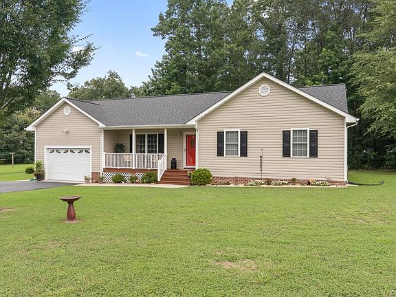 Extremely well maintained One level Home! Quiet country feel but still close enough to shopping and interstates. Enjoy mornings on the covered front porch or the rear deck. Hardwood floors throughout the Living room, Large kitchen and eat in area and sunroom that also features french doors and access to the rear deck. Separate laundry off of kitchen that attaches to the spacious well laid out garage that has a pedestrian door out to the backyard, new garage door opener and springs. Three bedrooms, and two full bathrooms. Pull down attic steps. Paved Driveway with extended pad for extra parking just resealed in 2020, Vinyl Siding, Vinyl Windows, Gutters with Guards and a New Roof. Water heater replaced in 2019, new tile in both bathrooms in 2019. The backyard is very private and partially wooded.