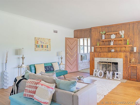 This 1920s gem located in Pawhuska, Oklahoma, on a large corner lot is move in ready and has so many perks! Featuring 3 bedrooms, 1 bathroom, an office and a hobby room with hardwood floors throughout. Living room is spacious w/ built ins and fireplace, office located off the living room. Formal dining is large with plenty of room for hosting guests! Wet bar is conveniently located off the dining area. Kitchen has an abundance of cabinets with newer fridge and range/stove included! Enjoy the sprawling views of the Osage on the covered front porch. This home qualifies for USDA 100% financing!