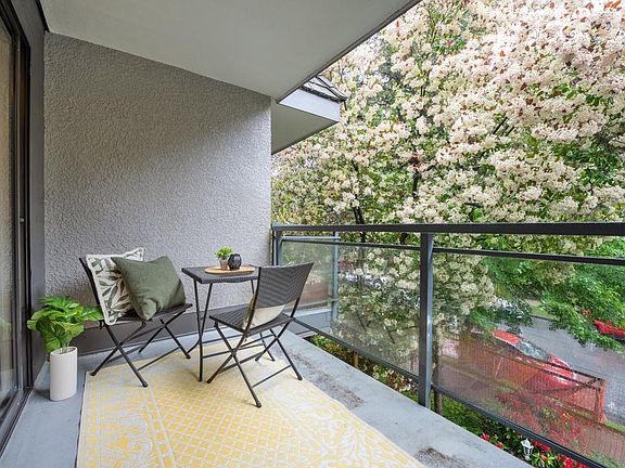 Welcome to Scotia Place! Located in one of Vancouvers most central and sought after locations just a short stroll from everything you could ever need! This 2 bedroom, 1 bath home has an open floorplan boasting a sizable living room w/ gas f/p & leafy view from your private patio. The bright renovated kitchen offers modern two tone cabinets, designer backsplash & cooling natural linoleum floors adjacent to the flexible dining area. Brand new sliding doors & windows! Ample insuite storage, laundry every floor, 1 parking and strata fee included heat, gas fp and hot water! You will love this cool mid-century modern condo w/ schools, parks, community centres, award winning restaurants, breweries + the future Broadway Line & St Pauls minutes away - city living doesn't get better than this!