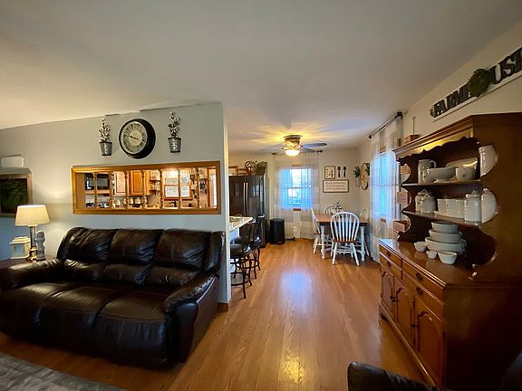 Beautiful brick ranch on corner lot features open concept living room with updated eat in kitchen, updated baths, additional family room, double pane, insulated windows, central air, gas heat, large 2 car detached garage, and patio with privacy fence. Must see to appreciate!