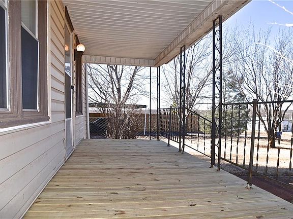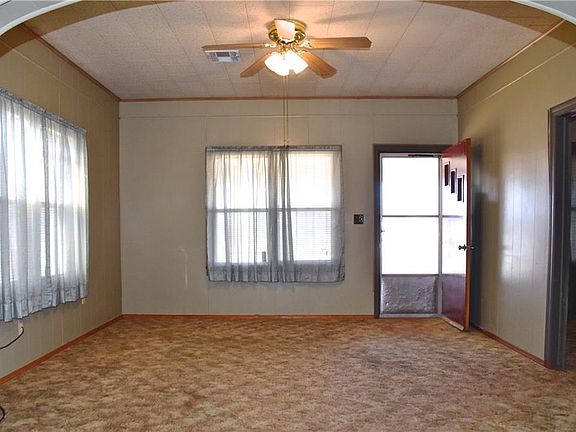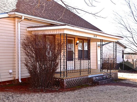 Cute little bungalow in the heart of Mulhall. This home has been well maintained such as new sewer and water lines to the main. The large, country kitchen includes farm sink and tons of storage including built-in hutch. All appliances stay - including refrigerator, stove, washer/dryer. Updated bathroom includes large shower and painted cabinetry. Living & Dining rooms are large with tons of windows! Relax in the back florida room or use for hobby/2nd living/office. Central Heat & Air in good working condition. Home is surrounded by chain link fence, provides a storm shelter and large outbuilding with loft and electric. Detached garage as well as a carport for additional parking.