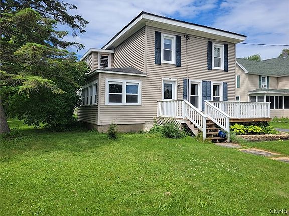 The time is right to step up to homeownership. This 3 bedroom, 1.5 bath home with a detached garage is sure to please. The kitchen features stainless steel appliances and the washer and dryer are included. The spacious living room has plenty of windows that bathe the home with light. The formal dining room, is perfect for meals and game night! A half bath is conveniently located on the first floor. Check out the enclosed porch, what a great 3 season space this is. Upstairs you will find an updated full bath and three bedrooms. Off the primary bedroom is bonus room that could function as an office, nursery, or a huge closet. Explore your options. In the spring, summer and fall you will love sitting on the new front porch. Grab a cool drink and a good book and enjoy a relaxing afternoon. There is adequate yard space for outdoor fun and gardening. The one car garage has room for your vehicle and yard equipment. This home is close to some of the best fishing and tourist attractions around. Live where others come to vacation. Close to the Black River, Lake Ontario, Watertown, and Fort Drum. Homeownership is one of the best ways to build wealth. This sweet home can be yours!