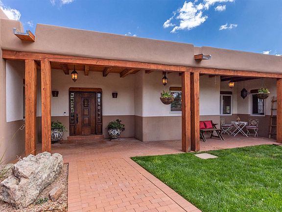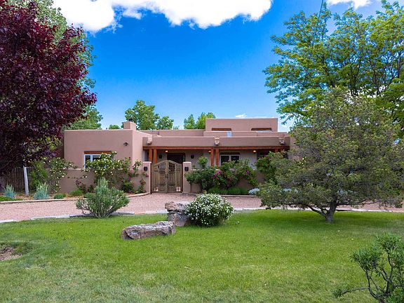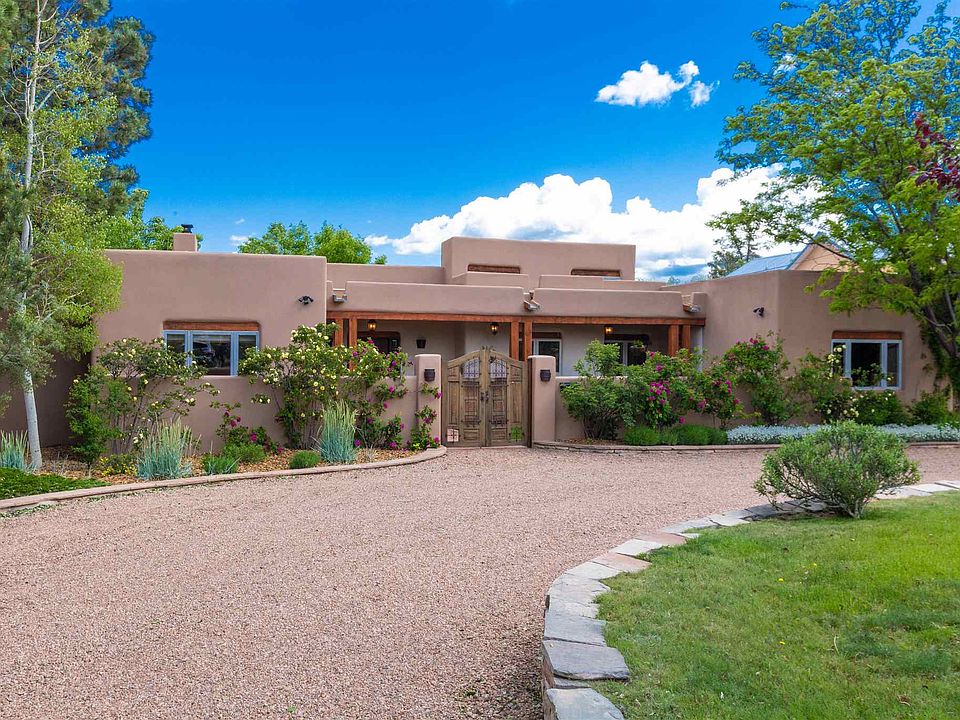 This custom built 3 bedroom and 5 bathrooms home is spacious and well appointed. Originally designed and built in 1993 and fully renovated in the last few years this home is ready to move into. With an ample ½ acre fully irrigated and landscaped lot there is an open and welcoming curb appeal. The circular drive is a lovely entrance to the property; enter through custom La Puerta gates and into a perfectly manicured landscaped courtyard. This inviting home is central to all of the amenities of downtown Santa Fe. Located in the eastside and on a memorable block with equally impressive homes, this offering has present and future value. The fine finishes include extraordinary granite, plaster walls, high beamed ceilings & wood and tile floors. The spacious light kitchen is a cook's joy with clerestory windows, plenty of counterspace and in-kitchen dining. Relax in the informal living/library. The comfortable living and dining room are spacious with open pane French Doors to the spacious portal. The grand owner's suite has his & her baths each with closets. This home has a great fenced back yard with lots of recreational opportunities, beautiful landscaping & mature trees. Step into the privately sited detached guest bungalow with full kitchen, bath, laundry and fireplace. This is a rare offering don't miss it!