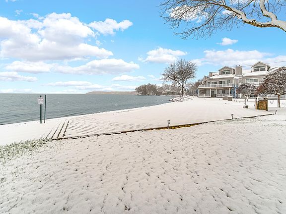 Unit 111. Impressive lakefront condo at the Culver Cove with a full view of beautiful Lake Maxinkuckee with neutral colors throughout. Bead board lined hallway with wood flooring leads to kitchen open to living room with fireplace and view of the lake. Remodeled bathroom with tiled shower with glass sliding doors. Remodeled kitchen includes expanded counter space, stainless steel sink with instant hot water dispenser, and new cabinets. All appliances stay including electric range, dishwasher, microwave and refrigerator. Deck has underdeck ceiling system and has been updated with new maintenance free decking and railings. Common area free laundry, pool/hot tub, tennis/basketball court, workout room, meeting areas, and plenty of parking. Furnished condo unit also includes a 1 year Guard home warranty.