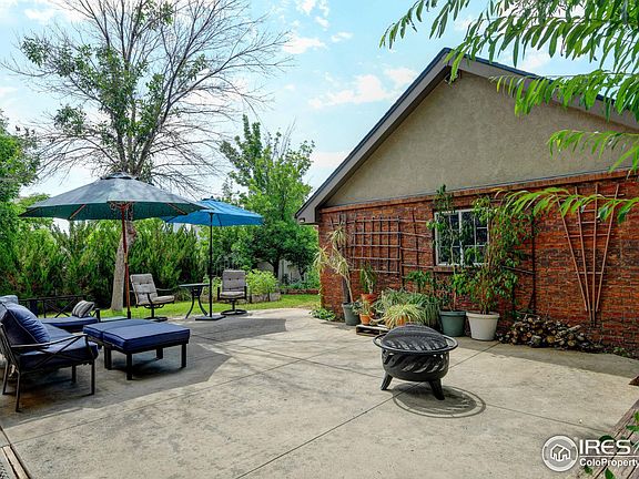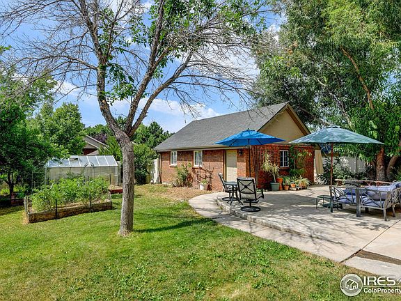 A gorgeous bungalow in the heart of Berthoud's Mary's Farm neighborhood! This meticulously maintained all-brick and stucco ranch sits on a spacious corner lot (70x142) and offers timeless charm with modern amenities. The main level features solid oak hardwood floors throughout the kitchen, dining, and living areas. Brand new high quality carpeting was just installed and is beautiful! Adorable kitchen with gas stove, stainless steel appliances and bar seating. The main level offers 2 bedrooms and an updated bathroom. The professionally finished lower level provides a large and serene bedroom suite with a huge walk-in closet, an updated bathroom with a jetted tub and a separate oversized shower with custom tile. Additional living space includes a cozy family room, an office or hobby area with custom maple built-ins, and a good sized laundry room. Enjoy outdoor living with a HUGE concrete patio, ideal for backyard barbecues and entertaining. This home is set on nearly 1/4 acre of professionally landscaped and irrigated grounds. The lot features over 15 mature trees, berries, grapes, apples, raised vegetable beds, 3 access gates, 8x16 greenhouse. Current owner has used only organic gardening techniques.The oversized all-brick and stucco detached garage includes attic storage and a dog run area. Great set up for multi- generational living- as the space can be easily and privately shared. All appliances are included.