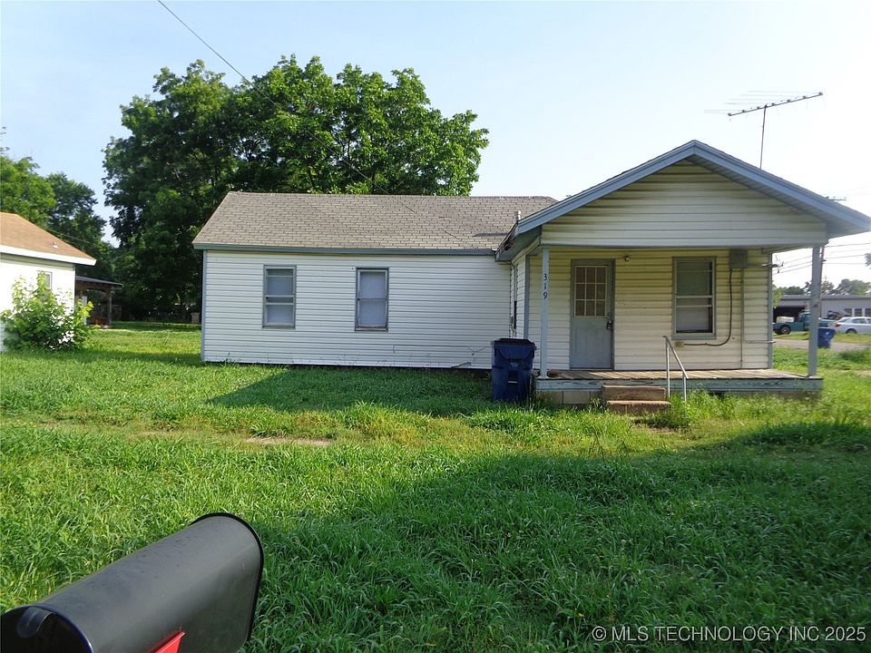 One bedroom home that has just had the interior freshly painted. Living room, Kitchen with dining space, also has the ranch & refrigerator. Walk-in closet, Window air, Heat will be a wall heater to be installed by fall.