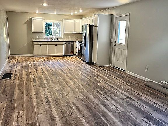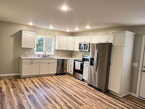 Newly remodeled 2200 square feet home sitting on a little over an acre in a country setting in Waco Kentucky. The first floor consists of an open concept with the kitchen flowing from the living room. There is a master with an en suite and also a 2nd bedroom and bathroom. The fully finished walkout basement has an option for two more bedrooms and a full spacious bathroom. There is also a laundry room and a room for a family room or even a man cave! There are new kitchen appliances as well as a water heater. The central heat/air is also new. There is a fresh coat of paint as well as new flooring throughout the whole house.