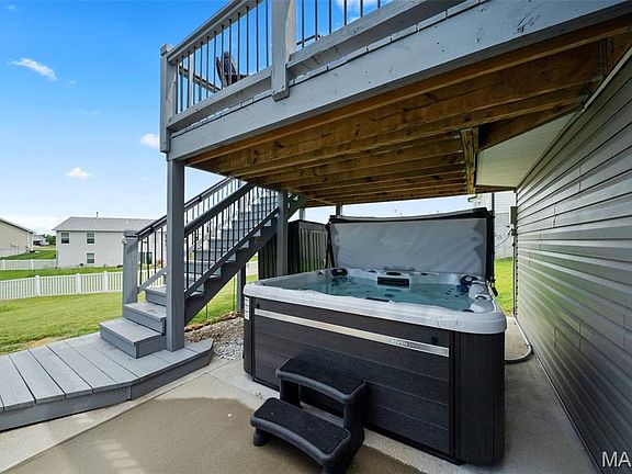 Professional pics coming. Showings begin May 15. Welcome to this stunning 4-bed/3-bath walk-out ranch, complete with a spacious 3-car garage! Step into the bright dining area featuring a charming bay window, and enjoy the kitchen with a breakfast bar, gorgeous quartz countertops, deep undermount sink, and a generous walk-in pantry. The main floor also offers convenient laundry, a vaulted great room perfect for entertaining, and a luxurious master suite with an expansive bath-featuring an adult-height double bowl vanity and a large walk-in closet. The walk-out lower level is partially finished, offering a fourth bedroom, full bath, a spacious rec area, and abundant storage. Step outside to your private deck or unwind in the hot tub, all while taking in views of your oversized premium lot that backs to common ground. Additional updates include a new roof (just 1 year old), newer A/C, and updated flooring. This home truly has it all-schedule your showing today!
