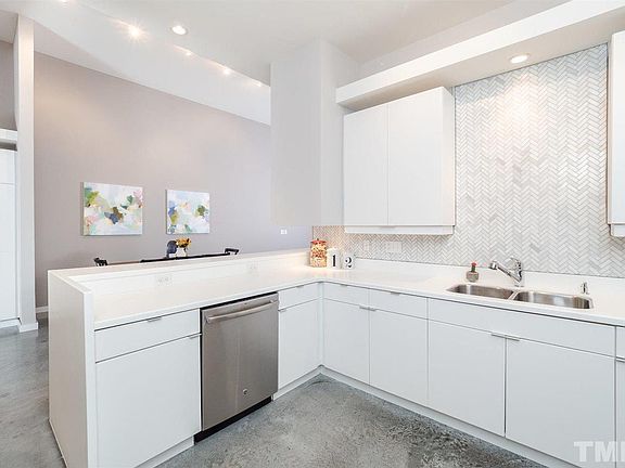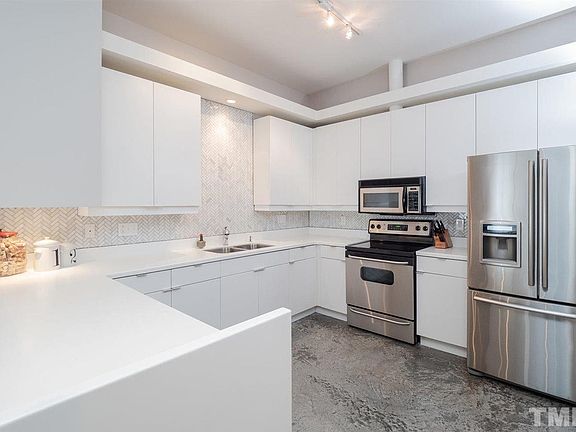 Beautiful, updated unit in downtown Raleigh's most unique modernist building. New HVAC system w/ Nest Pro thermostat, master bathroom reno, hot water heater, dishwasher. Open plan w/ concrete floors. Kitchen has SS appliances, tile backsplash, plenty of cabinetry and extra storage on the 3rd floor. Floor to ceiling windows and highest ceilings of any floor in building. Oversize master bedroom includes glass pane window. Building boasts gas grills in courtyard, fitness center, securing parking and access.