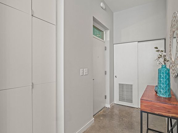 Live in the heart of downtown, but above the hustle & bustle in this large (1,449SqFt), 2 bedroom suite, split floorplan condo in The Hudson! Enter this bright 4th floor home to an open floor plan with soaring 10ft ceilings, concrete flooring, updated fixtures & fresh paint throughout. The large living area gives you the ultimate flexibility on how to use the space and features surround sound speakers in the ceiling and a wall of windows! The split bedroom floor plan provides privacy & offers 2 ensuite bedroom options. Kitchen fts white cabinets, stainless steel appliances and lots of cabinet & counter space and is open to the large designated dining area. The main primary bedroom is sizable w/a wall of windows, 2 walk-in closets w/custom shelves & an updated ensuite bathroom. The other primary suite option is also sizable, with tall ceilings, and an updated ensuite bathroom. Home fts newer HVAC-2021, newer water heater-2017, and the refrigerator, washer & dryer convey. Unit also comes with a large storage space (around the corner-same floor). Secure building w/courtyard, fitness center & parking garage. Location can't be beaten! Walk to restaurants, grocery store, bars, fitness studios, and more.