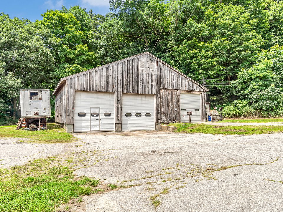 Located just minutes from the highway, this property is an ideal location for a mechanical shop. A private entrance leads to a front parking area with ample space to accommodate all types of vehicles, from large trucks to smaller cars. The structure features a 2 1/2-ton capacity loader, perfect for heavy motor extractions, and two 1,000-gallon tanks for enrolled fuel storage. A wall-mounted air conditioning unit in the smaller bay keeps the entire space cool and comfortable. The interior has been recently updated with new fans, lighting, and freshly installed sheetrock walls, providing a clean, professional look for your business. The space is heated by an oil heater, with a ready-to-use woodstove placement available for additional heating options. Additional features include a trailer for sale on the left side of the property and a container storage unit on the right, suitable for tools and miscellaneous storage needs. This property is a great opportunity to establish or expand your business in a prime location. A 2 bedroom, one bath, 840 Sqft home is part of the deal. The home is currently occupied by a tenant whom is not to be disturbed.