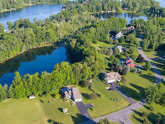 This is the life. Contemporary style featuring soaring ceilings, open flow and streaming natural light showcase every inch of this meticulously cared for 3 bedroom home located on a 1 acre cul-de-sac lot directly on Windmill Pond, with 7 acres of crystal blue water great for swimming, fishing & paddling. Clean lines and abundant windows frame peaceful outdoor views throughout while the interior is highlighted by inviting spaces to gather and unwind, such as the cozy living room with stone surround gas fireplace. A large laundry room equipped with convenient amenities is located on the first floor as are 2 of the 3 bedrooms. Upstairs is dedicated for the expansive master suite with private sitting area, along with a loft that would make a great home office. Outside, enjoy a backyard oasis with pool/patio area, hot tub, and deck with pergola for relaxing dining and lounging. Or retreat to Nature at one of the nearby water spots. Home includes deeded rights to Tully lakes and the annual HOA fee of $75 covers use of walking trails, docks, kayak racks and as of recently, allowing small motor boats. Are you ready?