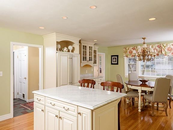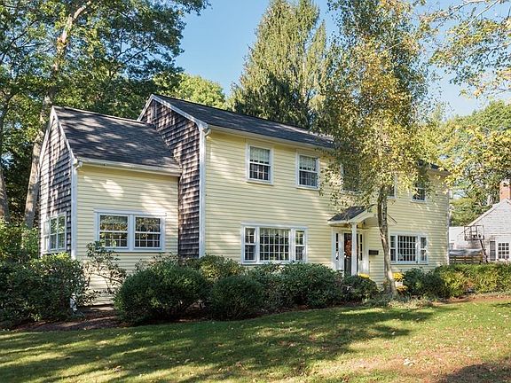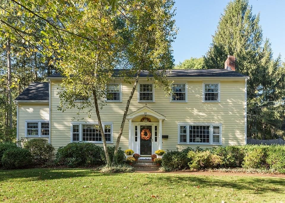 Renovated 4 bedroom Center Hall Colonial located in the sought-after Farm Hills neighborhood. While the home's exterior boasts lush greenery and flowers, a step inside reveals an updated 21 ft. kitchen with a center island, marble counters, pantry, gas stove, custom cabinets, dining area, and access to the deck for grilling and relaxing with family & friends. French doors open from the kitchen into a sunny family room, with vaulted ceiling and walls of windows. Elegance continues in the front to back living room which features a gas fireplace, gleaming hardwoods, and charming wooden beams. French doors off the living room lead to a storybook screened porch with vaulted ceiling and views overlooking the garden house, patio, and yard. The second floor has 4 corner bedrooms with hardwood floors, a family bath, and a master bedroom with a bathroom. Below, a newly finished lower level includes a spacious media room and a home office. Easy access to Rt.3, the train, and ferry.