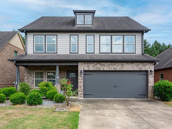 Move in ready! Fresh new paint throughout the whole house. Wood and LVP floor throughout the house. NO carpet.This great two story plan offers 3 (with an optional 4) bedrooms and 2.5 baths, plus a very open kitchen and living area. The master suite includes a large walk-in closet, raised double vanity, separate shower and garden tub. Large family room has a beautiful fireplace with gas logs and opens onto a lovely covered porch. Standard features include: 3 side brick, tray ceiling in master bedroom, crown molding in master bedroom, stainless appliances include dishwasher, micro hood, smooth top stove, beautiful cabinets with crown, fireplace with full mantel and granite surround, 9 foot ceilings, shelving in all closets, landscaped yards. Community is convenient to interstate, restaurants, and shopping. Great school zone! House is active on June 12th for showing!