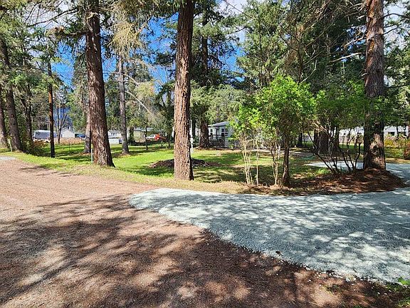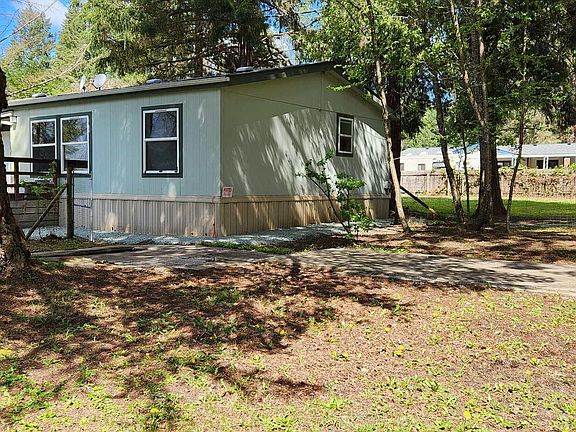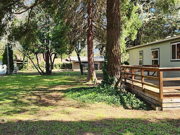 A Special Place To Call Home! Quiet neighborhood a short distance to the Rogue River and Chinook Park. This property is a gem! Almost an acre of level and useable space for outdoor living with majestic old growth trees. Featuring two decks, RV hookups, GPID irrigation, carport and storage sheds. New gravel driveway, parking and walkways with private driveway access. New $16K EcoPod septic system installed in 2023. This Palm Harbor Home is bright and open with vaulted ceilings, a smart split floor plan for bedrooms. Dining room space, galley style kitchen, mud room/laundry room open to the back deck. The light and airy primary bedroom has a walk-in closet. All this is waiting for your finishing touches the way you want it. All information is deemed accurate but subject to change. Buyer to do their due diligence.