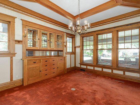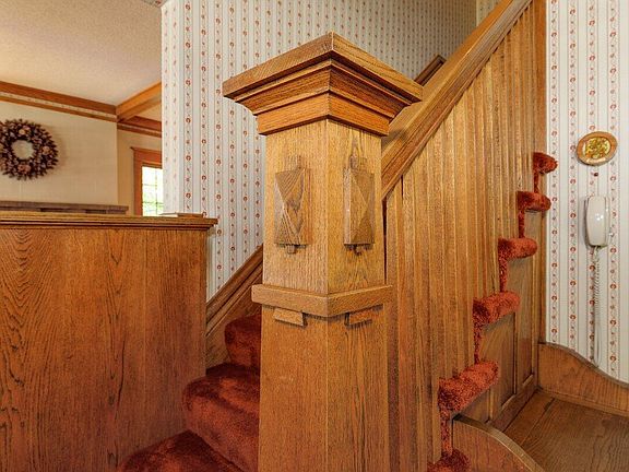 When you enter the home from the shady, front sitting porch you will encounter the fine oak woodwork and trim in the formal living room and dining rooms. The living room also contains the original fireplace. Nearby in the formal dining room there is more gorgeous woodwork and a built-in hutch to display all of your beautiful keepsakes.