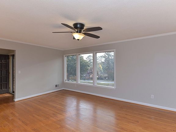 - Bookcases, Sunken, Ceiling Fan, Molding, Floors-Laminate, Bookcase