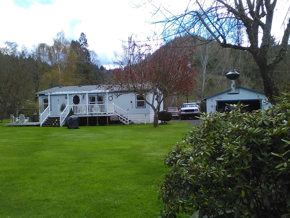 In Dixonville. 3 bedroom,2 bath 2 car detatched garage on half acre. . Large 2 level deck built with the trex decking and with city water, standard septic and irrigation rights from Deer Creek. A new 30 year roof was installed on the home and garage in 2007. In the Glide school district. We placed the home here new and has never been moved and it does not have a permanent foundation. End of road privacy. All reasonable offers considered.