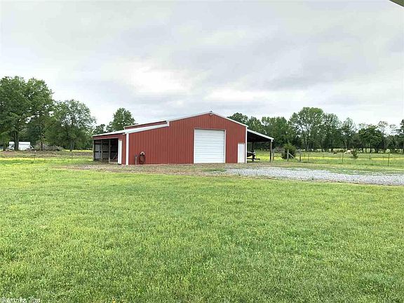 Wraparound country porch to sit and dream! Relax your day away while enjoying the scenery while the horses graze on the 5.09 acres. The home has it all with a very open floor plan with a gas log fireplace, huge breakfast bar, safe room, sun room, with the master area downstairs. Do you want a place for the horses? You have it also. A 3 stall area. Want a storage/shop? You have it too. A 40 x 54 foot shop with electricity and also a place for the boat with the covered lean to built on the shop.Great school