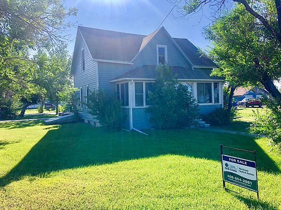 Home Saco MT Quiet Safe Community Hunting & Fishing Nearby This beautiful Craftsman home in Saco, Montana has been updated in recent years with new vinyl windows, vinyl coated aluminum siding and ashalt shingled roof. Updates have been made throughout as necessary but the original 1915 style of this home continues to stand out as the owner chose to maintain the original design of the home as well as the original doors and trim. The 1092+/- square foot main floor includes an expansive master suite with walk in shower and jetted tub. A built in gas fireplace and entertainment center has been added to the living room and the kitchen has been updated with new cupboards, countertops, laminate floors, and built in wall oven and stovetop. Laundry is located on the main floor as well as an enclosed porch off the west side of the home. The 819+/- square foot second story adds 3 more bedrooms, a half bath and a remodeled 3/4 bath. The quarter-acre corner lot is located dircetly across the street from the Saco school and is well cared for, with mature trees in place. A 22'x24' detached garage has an automatic insluated garage door and overhead storage. Both front and back doors of the home open onto a covered porch, adding to the charm of this home.