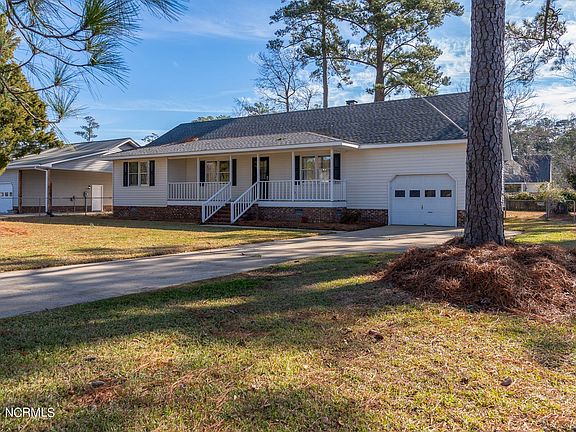 Enjoy the serene outdoors with a covered front porch, ideal for sipping morning coffee, and a back deck perfect for hosting summer barbecues. The surrounding pine trees provide a natural backdrop, creating a peaceful and private atmosphere.