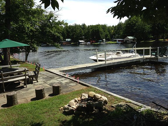 This year round Cape Cod has 50' of shoreline with a patio and dock for your pontoon or speed boat. The home has 3 bedrooms and 2 baths plus an inviting, open concept dining, living room and kitchen. An additional room can be used as an office or another sitting room. The garage is attached with a roofed area and there is a finished 10 X 26 room above that can be used for many purposes: bunk room, studio, workshop or storage. The spacious yard is large enough for family outdoor games and the perennial gardens are lovely.