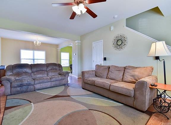 Magnificent home w/ rocking chair front porch available in conveniently located Wesley Chapel subdivision! This home features an open floor plan w/ wood laminate flooring throughout majority of main level. Kitchen has breakfast area & white appliances. Upstairs w/ loft & large secondary bedrooms. Huge master suite w/ walk-in closet! Large, level & quiet back yard is perfect for entertaining! The community includes a pool & playground. All close by to grocery store, shops & restaurants