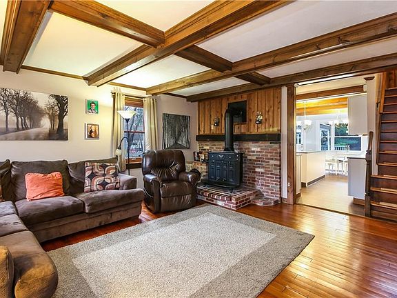 1940s built colonial features custom wood millwork throughout plus modern day conveniences. Home has 4 bedrooms (one on the main level) and 2 full baths, hardwood floors, lovely coffered ceiling in the living room, and a recently remodeled large eat-in kitchen w/Quartz countertops, center island and s/s appliances. The large eat-in/breakfast area overlooks an expansive multi-tiered deck complete with gazebo and pergola, ideal for recreation and summertime fun! Additional features include a 3-season screened porch, 1-car detached garage, a heated office/studio space w/vaulted ceiling and built-ins, offering an additional 154SF which is not included in the total SF. Newer furnace. Minutes from I-95, Hammonasset State Park, beaches and train station.