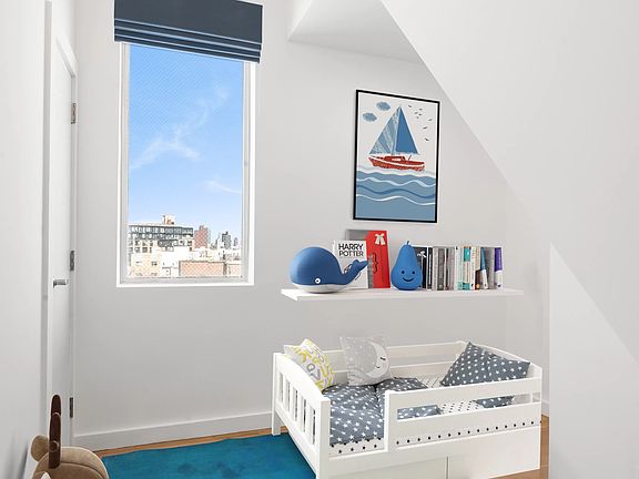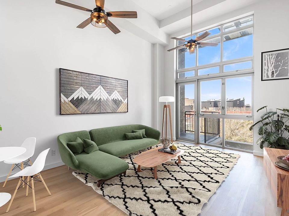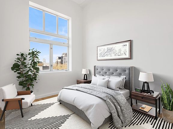 *Open Houses by Appointment Expansive Williamsburg one-bedroom plus office, balcony and private roof terrace with an incredible view of the Manhattan skyline. Two blocks from busy Graham and Grand Avenues this quiet, 936-square-foot apartment gives you convenient proximity to the neighborhood's best shops and restaurants. Enter into the foyer and you can't help but look to the 13'7" ceilings and massive wall of windows with skyline views and beautiful Western light. Passing the coat closet and laundry closet you will enter the modern kitchen with stainless steel appliances, dishwasher and generous stone countertop. Enjoy views of the Manhattan skyline from the bright and airy living room and balcony. The high ceilings continue into the spacious, primary bedroom equipped with two-levels of double-closets. The "home office" has both a window and closet and makes an excellent flex-bedroom. Head up the stairs to a 20'x10' Mezzanine with 5'6" ceiling that can be used as a work-space, a second living-room, a flex-bedroom or a storage space. The 400 square-foot, private roof terrace offers dramatic Skyline and Brooklyn views. Water and electricity are available making this a great space for gardening, entertaining or evening plugging in a projector to watch a movie. With low carrying costs, more than 10 years left on the tax abatement and a superb location, 319 Humboldt makes for a smart investment and a fantastic place to live.