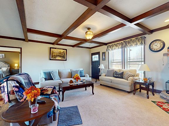 Give the 3D Matterport tour a whirl and see if it feels like "home". Explore this like-new 3 bedroom, 2 full bath residence with almost 2,000 sqft on a double lot. Step into a welcoming living room featuring a coffered ceiling, a cozy corner stone fireplace, and sunlit windows. The open floor plan, with its split bedroom design, combines comfort and functionality. Delight in the beautiful kitchen with white cabinetry, wood-look flooring, decorative tile backsplash, and a wonderful island with storage and a breakfast bar. Enjoy the covered back porch accessed through the dining nook. Adjacent to the kitchen, find a separate laundry room, two bedrooms, and a full bath. Notice the crown molding decorating each room and the natural light filtering through numerous windows. The spacious primary suite at the opposite end includes a generous bedroom and a spa-like ensuite with a big walk-in shower, separate vanities, private commode area, and multiple closets. Access the back porch conveniently from the primary bedroom or kitchen. The backyard offers an open greenspace for easy maintenance and an above-ground pool for summertime fun.