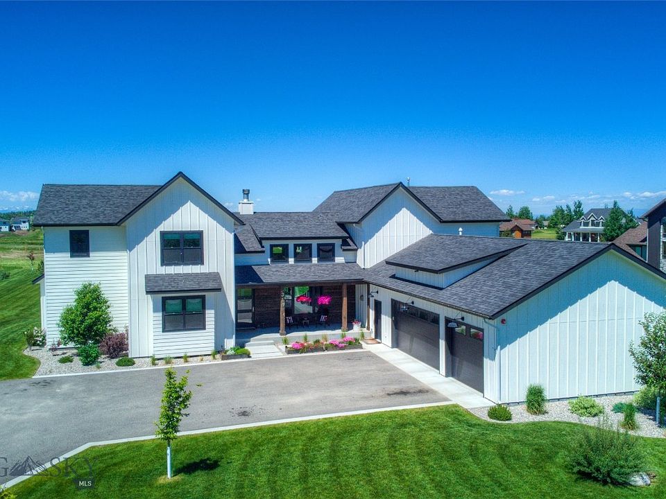 What you have been waiting for! This beautiful modern farmhouse on just over an acre with close proximity to Downtown Bozeman while offering extra space, expansive views & backs to 7+/- ac park. You are welcomed by an open & inviting living, dining & kitchen area, and a wall of windows opening to the backyard. Sophisticated style & design throughout with great entertaining spaces. Main level primary suite with walk-in closet & a full 'pamper yourself' bath with access to the laundry room. Attractive office with large windows & mountain views. Spacious mudroom off the oversized 3-car garage. 2nd level has two separate spaces, one with 3 nice sized bedrooms, a full bath & 3/4 bath the other on the other side of the home with TV/game room, bedroom & full bath. Wonderful front porch & covered back porch leading to a patio complete with a gorgeous water feature that provides a tranquil setting. The large backyard with corner backing to the park is great for taking in the Montana sunsets.