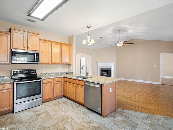 Lovely brick home located in the quiet Arlington Farms subdivision, just minutes from Downtown Fairhope. Huge corner lot, fully fenced. New Fortified Roof (2022) and HVAC replaced (2021). Three bedrooms, two full baths in a convenient split floorplan. The spacious primary suite features a sweet space to enjoy the great backyard, and private door to back patio. Also, a large closet and en-suite bath with double vanity, tub and separate shower. The kitchen features beautiful tile floors, granite countertops, and whirlpool appliances (microwave, electric oven, dishwasher) and a large eating area. The wood-burning fireplace has been stylishly refurbished with tile and marble (seller has never used). The spacious landscaped yard is perfect for any gardener, with raised vegetable garden beds and citrus trees. Some other convenient components of this property are the fence with side double gate and concrete pad that extends the patio in the backyard, and an attached sidewalk that leads to the driveway. Buyer to verify all information deemed pertinent.