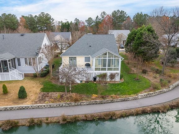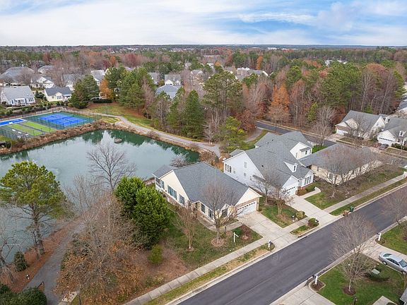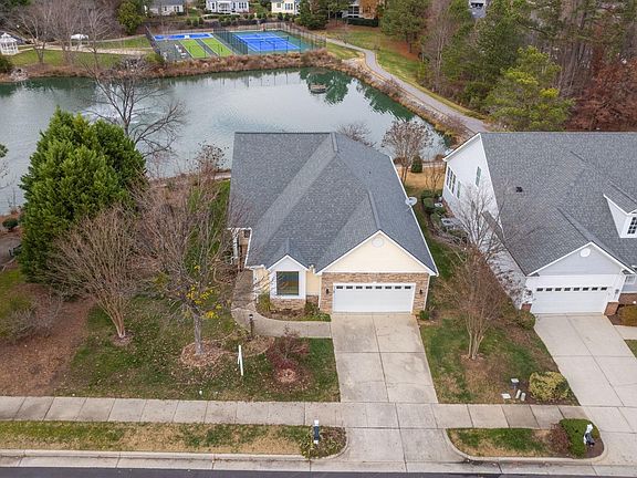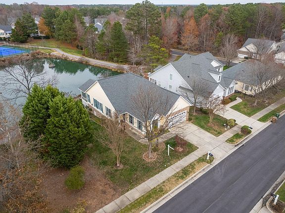Beautiful, well maintained, one story home in Heritage Pines, an active adult community in Cary. Located on an amazing lot within the community, this home overlooks the community pond and fountain. Just a short distance to the community clubhouse and amenities, which include tennis, pickleball, trails, pool, exercise room, clubs and activities. Upgraded kitchen with granite counters, cherry cabinets and stainless steel appliances. Large kitchen island has plenty of prep space! Built in shelving is perfect for the book lover! Owners bath remodeled to include additional storage closet and walk in shower with glass block window. Beautiful sunroom with heat, ac and ceiling fan is a great place to relax and take in the water view. Roof replaced in 2018. Low maintenance Trex deck and Leaf guard gutter guards! Hot water heater upgraded to a tankless water heater. Interior recently painted. Heritage Pines is in a great location in Cary. Close to major roads, grocery stores, shopping, restaurants, parks and rec. Welcome Home!