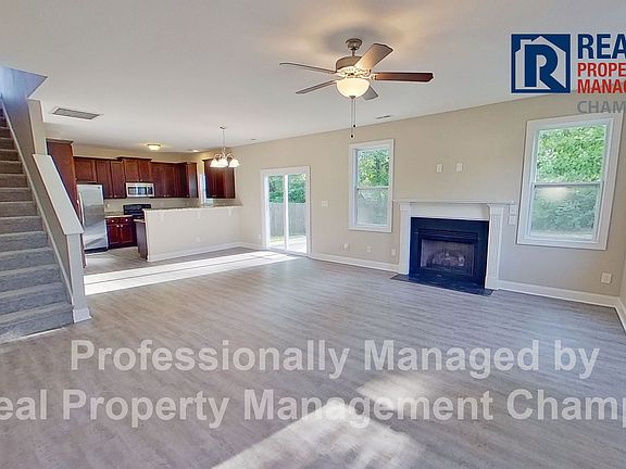 This 4 BD/2.5 BA home offers lots of space both inside and out. The warm and inviting rocking chair front porch will greet you as you enter the foyer. The beautiful wood-like LVP flooring flows seamlessly throughout the main level which features an open floor plan. The living room includes a cozy fireplace, and the dining room has a sliding glass door access to the patio and large back yard. Ample cabinets, granite counters and a breakfast bar are found in the well-planned kitchen. The laundry/mud room is conveniently located between the kitchen and attached two car garage. A powder room with pedestal sink completes the main level. The upper level has carpet throughout and features a spacious master suite with trey ceiling and private bath with a double sink vanity, soaking tub, step-in shower and extra-large walk-in closet. Three generous sized guest rooms and another full bath are also found on the upper level. This home is located in Sneads Ferry in The Landing at Everetts Creek community. We are an Equal Housing Opportunity Management Company and abide by the term of the Federal Fair Housing Act. Pets negotiable and must have prior approval and required pet fees. No Smoking, e-cigarettes or vaping. All applicants over 18 years of age are subject to a background check, including criminal, credit, employment verification, and past tenancy.