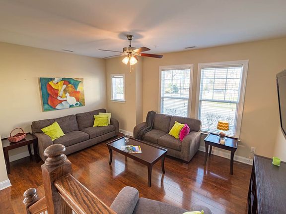 48-hour notice req'd for tour. DO NOT DISTURB THE CURRENT RESIDENT. Stunning end-unit townhome ready for you to call home! Enter into the open concept main floor including gleaming hardwood floors and tall ceilings. Dining room leads you into your beautiful kitchen with wood cabinetry, granite countertop, island with overhand for bar seating, and SS Appliances. Off the kitchen you will also find a half bath (powder room) and exterior entrance to the parking area behind the car. No reserved parking, however all neighbors observe "honor rule" for parking.