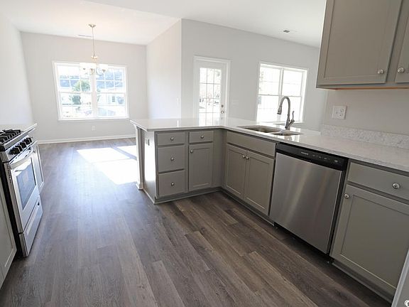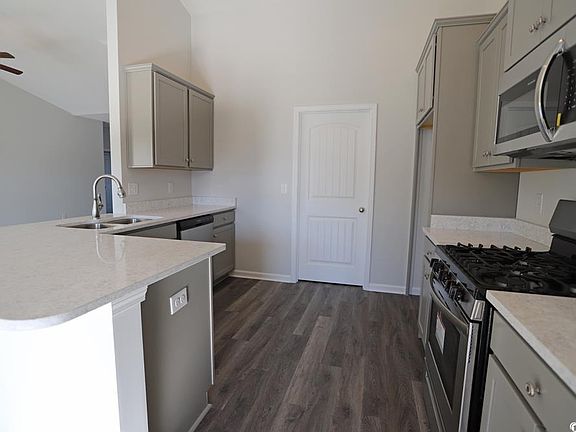 Golf cart to the beach from this beautiful Fripp floor plan home by the local builder voted Best of the Grand Strand and Best of the Beach for the third consecutive year! In the Ocean Palms community (Voted Best Neighborhood!). This terrific 3-bedroom, 2 full bath, open floor plan home with upgraded waterproof lvp flooring throughout - no carpet. Stainless appliances, staggered-height Shaker-style off white painted cabinetry, quartz counters with a cast iron and porcelain farm sink, a beveled subway tile backsplash, a walk-in pantry and a convenient breakfast bar with added pendant lights combine to give the kitchen the wow factor you're looking for. The abundant recessed lighting, two sets of double windows and an open great room flood the home with light. There is a large, covered porch and adjacent concrete patio off of the great room. The spacious owner's retreat features an oversized walk-in shower and vanity with quartz counters and undermount dual sinks. Plenty of storage can be found in the cabinetry, linen closet, and walk-in closet. Two additional bedrooms and a bath are tucked off on their own private hallway, for privacy. All of the homes in Ocean Palms come standard with the luxury of natural gas (tankless water heater, gas heat and a gas range). The garage is completely trimmed and painted, with floored attic space accessed by drop-down stairs, and the front and back yards are fully sodded. Ocean Palms is conveniently located near shopping, restaurants, schools and world class medical offices and hospitals, and a short golf cart ride to Surfside Beach's gorgeous beach and the Atlantic Ocean. Other floor plans and inventory homes may be available. Community pool and cabana now open! PLEASE NOTE: Photos are of a completed home of the same/similar floor plan, for informational purposes only, since the listed home is currently in the building process. The actual home may have a different floor plan, different features, upgrades and colors than that of the photos shown in the listing.