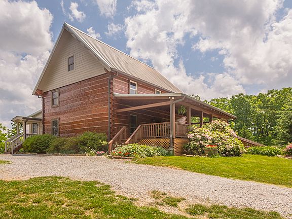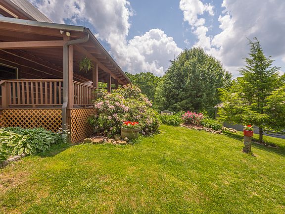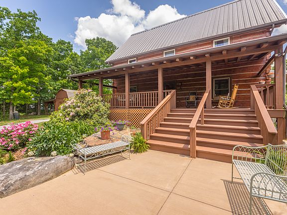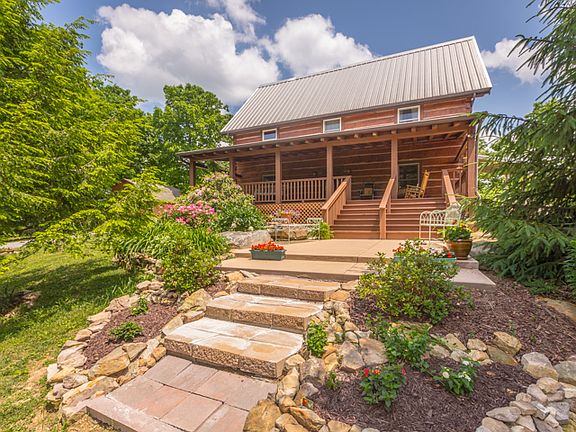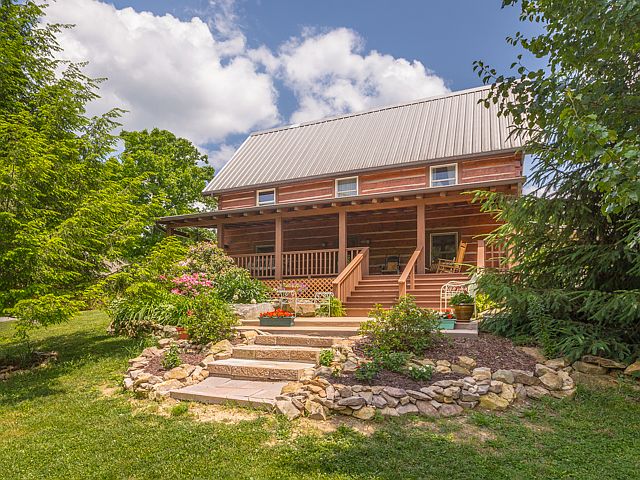 First time offered! Fabulous log home, custom built by Brian Blancett with loft area, situated on 17 acres with outstanding views from the eastern brow of Lookout Mountain. Home offers much privacy and a most beautiful setting featuring Gala apple trees, blueberry bushes, a garden area, and many native plants and trees. A true nature lover's paradise! Enjoy relaxing on the expansive covered front porch. The home has 3 BRs, 2 full and 2 half baths, fireside living room and den area, brow side kitchen with dining area, loft/flex space with bookcases overlooking living room, laundry room, master on the main level, and heart pine floors throughout. There is a very large walk up attic space with half bath that is great for storage or expansion area. A covered side porch overlooks the