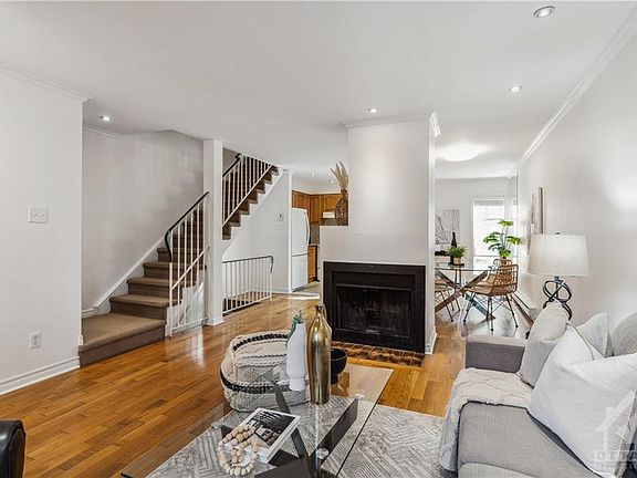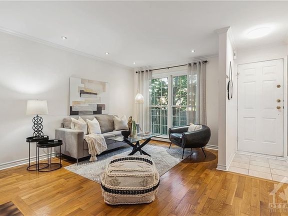 Open House Sun Nov 26th 2-4pm.This executive townhouse is situated in an exclusive enclave of just 16 homes, tucked away in the highly sought-after neighbourhood of Lindenlea just steps from the Governor General's residence & the vibrant array of shops & restaurants lining the Beechwood Promenade. The main floor boasts an open-concept design with hardwood floors & a cozy wood-burning fireplace. The kitchen w/updated countertop(2023) features ceramic tile flooring & a cook's island. The adjacent dining room is bathed in natural light, thanks to its floor-to-ceiling window that overlooks the courtyard & gardens. Heading to the second level, are three bedrooms, each graced with decorative floor-to-ceiling windows. A full bathroom w/a soaker tub completes this level. The basement provides a family room that's perfect for additional living space. As well, it offers convenient access to the underground parking lot. The air conditioner is a 'mini split AC system. Don't miss this opportunity! 2023-11-27