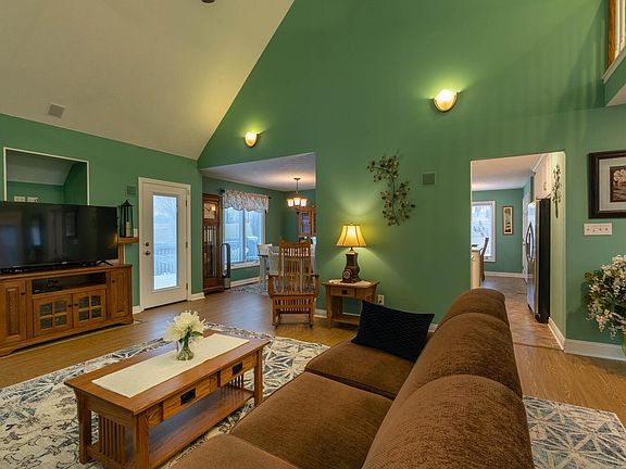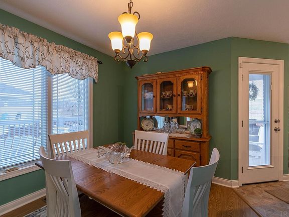 Near State Road 37, ideal location with easy access to State Road 37, Bloomington, Bedford and Crane. 2.69 acre estate sized lot with extensive manicured landscaping. 1-1/2 story over full walk out basement with 2 car attached garage. This home was built and has been improved with thoughtful consideration to enjoying living indoors as well as the incredible backyard with an 857 square feet extended rear deck – large enough for entertaining or family gatherings. Owner’s suite and laundry on the main level, two bedrooms and full bath upstairs, finished walk out basement. In addition to owner’s suite and laundry, the main level features a large living room with vaulted ceiling and gas fireplace, updated kitchen, updated baths, dining room and breakfast nook. Upstairs there are two spacious bedrooms and full bath. The lower level features a family room, two offices or dens, bath, electric fireplace with area behind also plumbed for gas which would allow owner to convert to vent less gas log fireplace, space to add a kitchenette with a walk out to an inviting patio. Overall this property is incredibly well maintained. Kitchen and baths updated in 2018, stain resistant carpeting, roof and 6” gutters replaced in 2016, additional attic insulation added 2022, exterior stucco painted in 2022, luxury vinyl plank floor in main living area installed 2021, new garage door 2022, custom vinyl Amish pavilion added 2018, pleasing interior colors, garage floor epoxied for a clean, fresh look. The smooth top electric range replaced 2020 and is also plumbed for gas if the new owner would prefer to convert. Furnace and A/C are serviced twice a year. Decorative vinyl fence panels and baby blue spruce trees added in 2022. You must see to fully appreciate. Call today to schedule your private tour.
