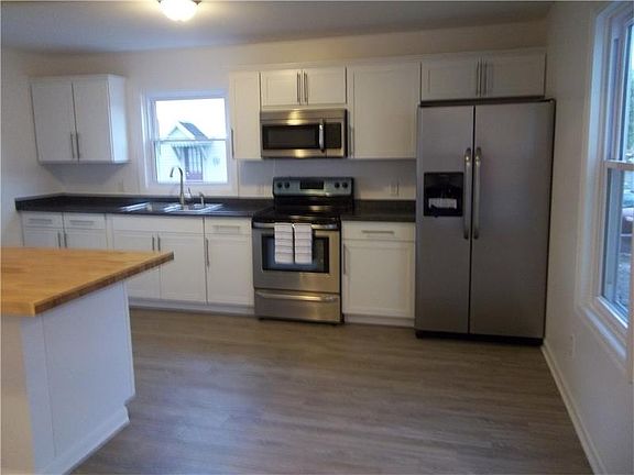 Just like new!! New interior design includes new kitchen with stainless appliances, stove, refrigerator and microwave. New bathroom including fixtures, tub, toilet and vanity with marble countertop. New vinyl plank flooring and new carpet throughout. New doors, windows, central air...the list goes on and on. All you need to do is move into this 3 bedroom home with detached garage. Rear deck with fenced yard adds privacy for entertaining.