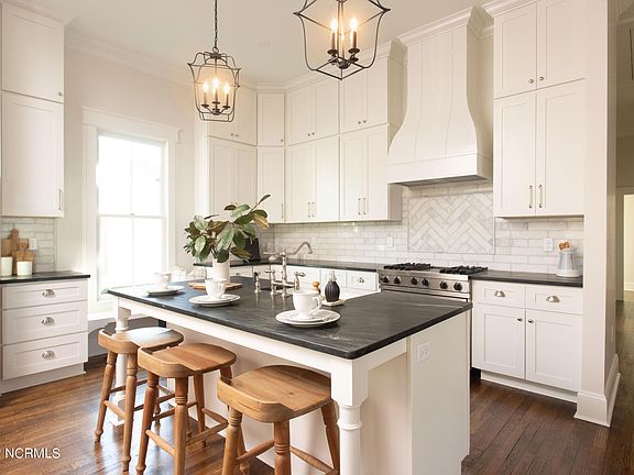 Truly one of a kind! This charming historic cottage underwent a full gut renovation. The best of both worlds, historic charm with modern conveniences!- home gutted to the studs and features new roof, HVAC, insulation, windows, plumbing, tankless water heater, etc. and dressed with designer touches! The floor-plan was converted back to a single family home from its past life as a duplex. The home features an open concept living/dining/kitchen. Beautiful bay windows in the living room overlook the brick paved streets of the historic district. Custom built ins flank the marble clad gas burning fireplace. The ceilings soar to 11' and are capped with custom decorative moldings true to the original era of the home. The custom kitchen features a 36'' Viking range, floor to ceiling cabinetry with soft close doors & drawers, soapstone countertops and a window seat for friends to hang out with the chef! Adjacent to the kitchen is an open home office with exposed brick details. A half bath sits at the end of the hall with original double hung transom windows. The rear of the home features 3 generous sized bedrooms. The owners suite features a carrara marble clad en suite bath and custom walk in closet. 2 additional ample bedrooms share a rear guest bath with classic clawfoot tub and double sink vanity. A rear mudroom is plumbed for a stack laundry and offers a great place to utilize as a drop zone when coming home! Off street parking for 2 cars is a true highlight for this historic home as well as a garage! Meticulous landscaping and sod make your yard a true haven. Kick your feet up on the southern front porch-you are home!