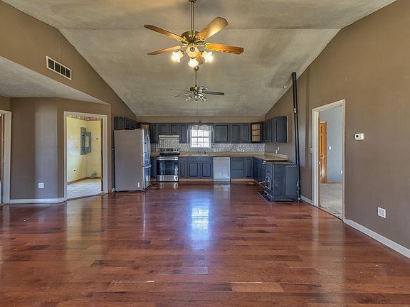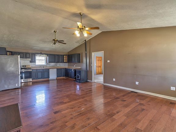 Welcome to this 3-bedroom, 2-bathroom home nestled in Boonville, IN. Located on a quiet street, this property boasts spacious living areas and a large pole barn that doubles as a detached 3-car garage, perfect for all your storage and parking needs. Upon arrival, you'll be greeted by the inviting covered front porch. Step inside to discover an open floor plan seamlessly connecting the living room and kitchen. With tall ceilings, large windows, and hardwood flooring, this space boasts both style and functionality. A wood-burning stove adds a touch of rustic charm. Conveniently situated off the living/kitchen area is a full-sized bathroom featuring a shower tub combo, providing ease and comfort for guests and residents alike. The spacious primary bedroom offers double closets for ample storage and an en-suite bathroom with a stand-up shower, creating a private retreat to unwind after a long day. Two additional bedrooms with double closets offer versatility and comfort, perfect for accommodating family members or guests. Completing the interior of the home is a convenient laundry room, adding practicality to everyday living. Outside, a generous backyard provides ample space for outdoor activities and relaxation. The highlight of this property is the expansive pole barn located behind the home, providing abundant opportunities for parking, storage, or pursuing hobbies and projects. Don't miss the chance to make this Boonville residence with tons of potential yours.