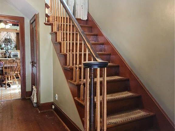 This brick cape cod has a cozy front porch where you will enjoy the breezy days ahead. You will be amazed by the unusually large side yards and a generous backyard. The foyer with an open stairway leads you into the living room with a decorative fireplace. Finishing off the first floor is the dining room, kitchen, and laundry room with half a bath. A pellet stove in the dining room will offset your heating cost. The rooms are a good size with a welcoming flow. The 3 bedrooms on the upper level all have ample closet and storage space. The full bath is on this level. Throughout the home you will find natural woodwork and hardwood floors. The lower level offers the built-in garage. Walk out of the basement to the flat rear yard to admire the playful mural. The home is minutes from Bangor Memorial Park and other convenient amenities. With some elbow grease you can refresh the character this home offers to make it your own.