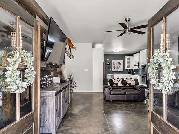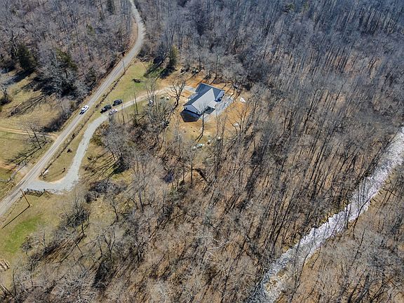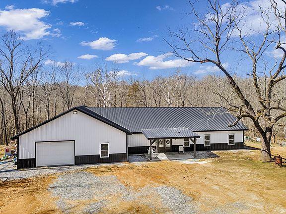If privacy and a new home are what you're looking for then you'll want to see this beautifully unique home on 17+/- acres with a beautiful creek running behind the home! Trail cut to creek for access. 2x6 exterior studded walls, cypress posts on porches, 3 insulated roll up garage doors in finished garage, Crinkle Black on all exterior (an upgrade which is a more durable metal and paint). Interior features 9' ceilings throughout with 10' in primary bedroom and shop, Wellborn Forrest solid wood cabinets, cherry butcher block countertops in kitchen, well water with filtration system, custom mahogany 4 lite double door and single door for front and back. 4 brs and 3 full baths with 2 additional rooms for home office and/or home gym or craft room. This custom home is a must see! Close to 64 bypass, it's only 1.5 hours to Nashville and 1 hour to Huntsville, AL. See Realtor Remarks for internet and cell service info.