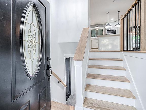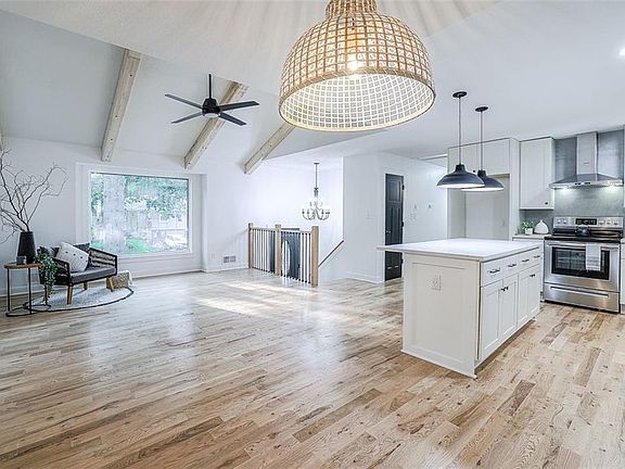 Everything about this home is simply amazing! Upon entering the home you will be greeted with natural wood and iron stair rails and a gorgeous iron chandelier.  The open concept living room features soaring ceilings with exposed wood beams adding architectural detail. The brand NEW kitchen has all new shaker cabinetry with quartz countertops and stainless appliances. The island in the kitchen provides even more cooking space for the chef extraordinaire. French doors lead to a covered deck just perfect for grilling out on these summer nights!  Additional storage in the backyard with a shed or can be used as a potting shed-so many possibilities here. Three full bedrooms, all new carpet and paint and light fixtures thru out. The master bath and hall bath have been completely upgraded to modern tastes. Downstairs has  a cozy gas fireplace and full bathroom with built-ins. Brand new garage doors complete this amazing renovation. This home is a MUST SEE!!!