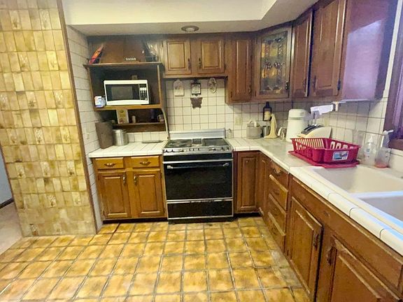 Here is a 3 Bedroom Ranch Style home with Fireplace, Nice Kitchen, Sunroom, Detached Garage, all on a corner location. Home and garage comes with everything in it.